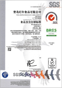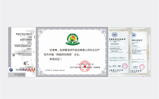 旺年堅持以食品安全作為發展的基石,除通過ISO9001、ISO14001、ISO45001、HACCP等體系認證外,還成為了業內為數不多具備出口食品生產企業資質、通過英國零售商協會(BRC)頒發的全球食品安全標準A級認證并獲得出口產品內外銷“三同”證書的企業之一,產品出口美國、加拿大等多個國家和地區。